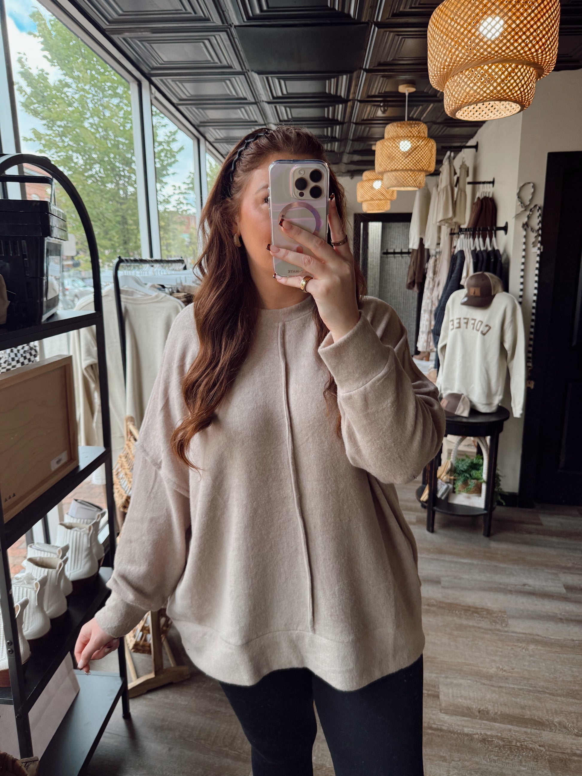 Cozy up in the Aubrey Sweater, your new favorite oversized companion. Made with soft ash mocha hacci fabric, it’s perfect for lounging or layering with a playful twist. Snuggle into its warm, textured knit and enjoy effortless comfort with a chic, relaxed vibe.