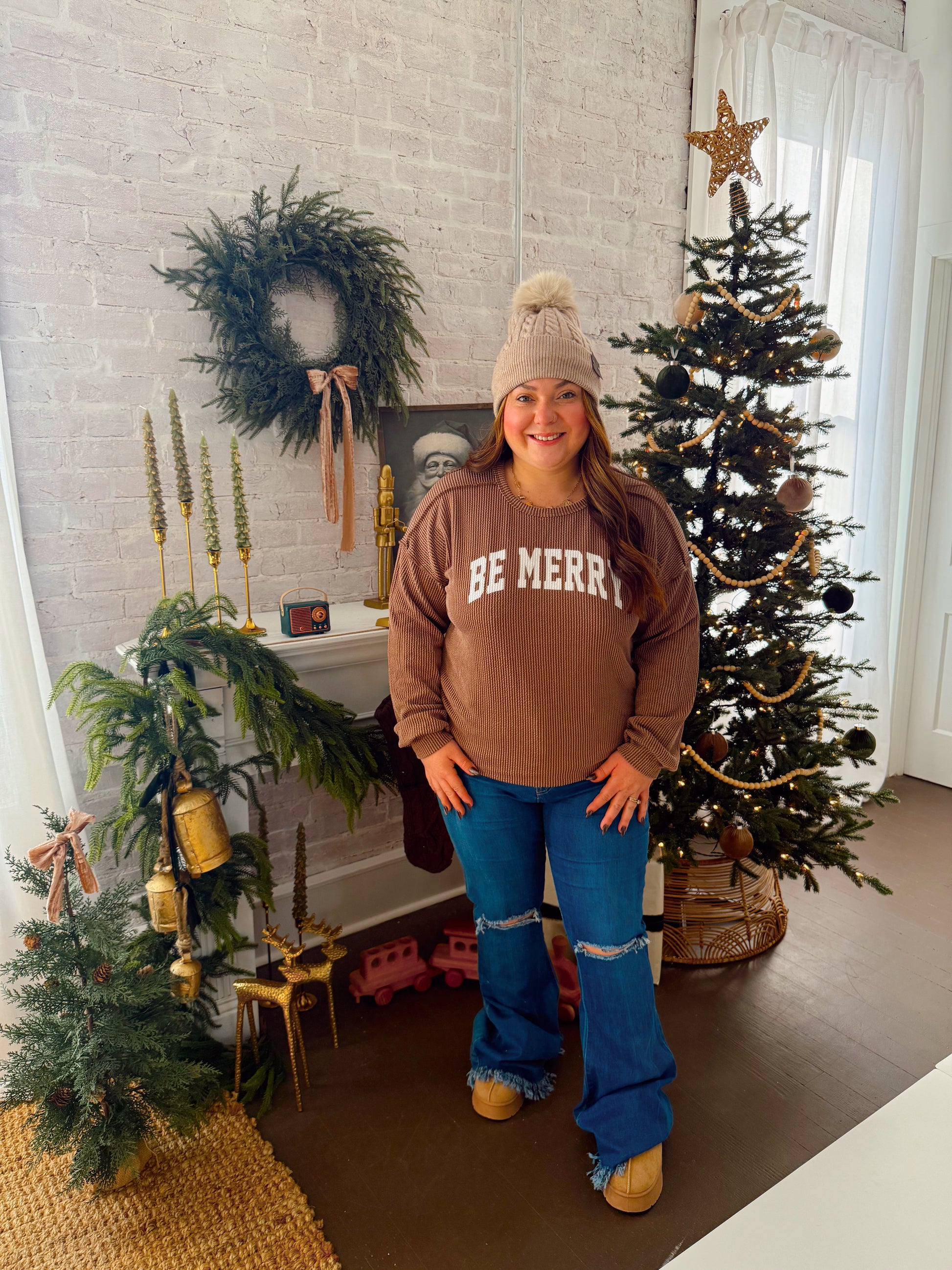 Wrap yourself in cozy vibes with this brown ribbed sweater—your new go-to for effortless style. The textured knit adds dimension to any outfit, while the relaxed fit keeps you comfortable whether you're running errands or settling in for the evening. Perfect for layering or wearing solo, this urban essential pairs with everything in your closet. Stay warm, stay chic, stay merry.