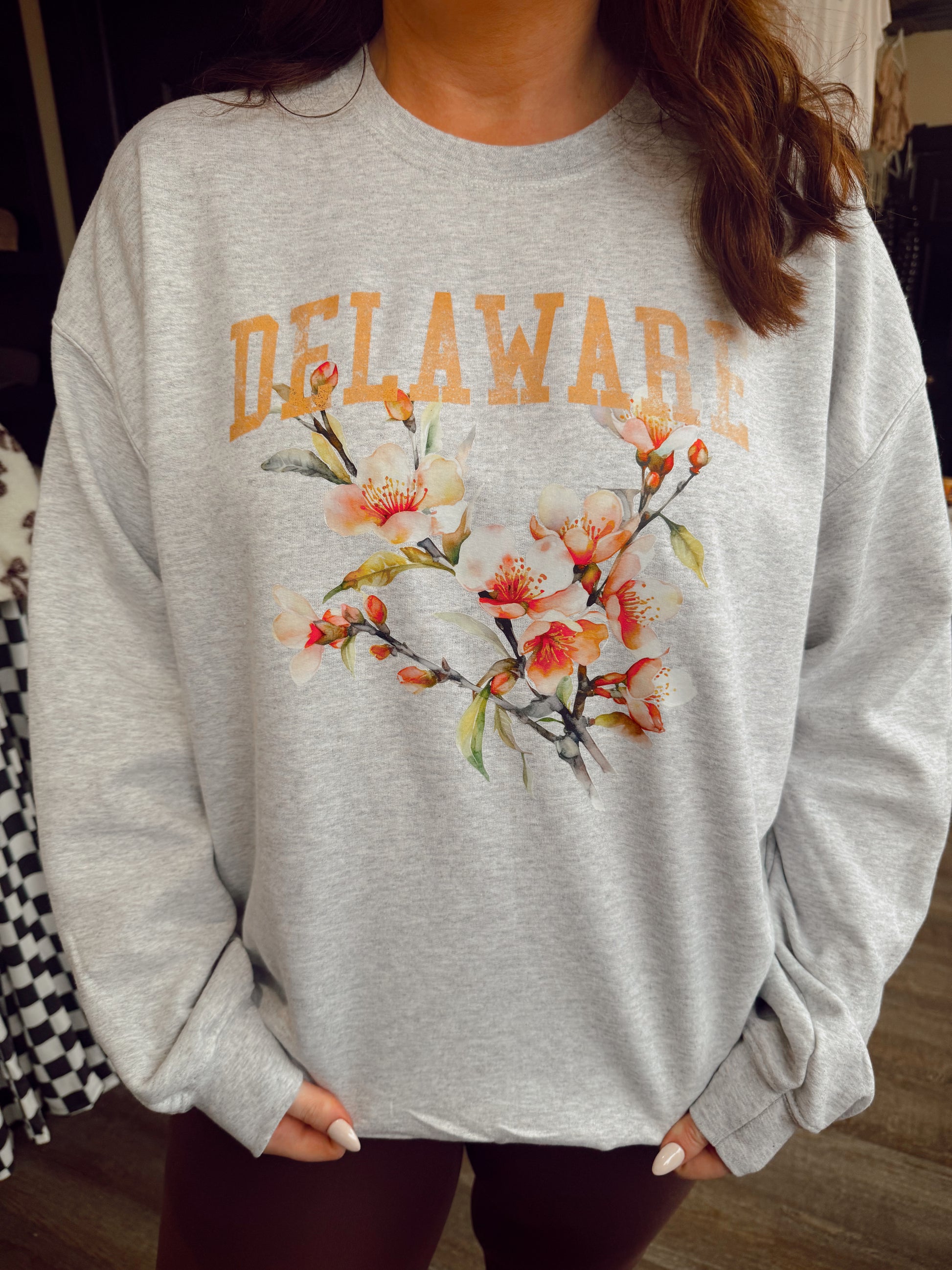 Celebrate your Delaware pride in cozy comfort with this relaxed-fit sweatshirt featuring the state flower in a soft ash light gray. Perfect for casual days when you want to rep your roots without trying too hard. The laid-back silhouette pairs effortlessly with jeans or joggers, making it your go-to layer for everything from coffee runs to weekend hangouts. Soft, versatile, and unapologetically you.