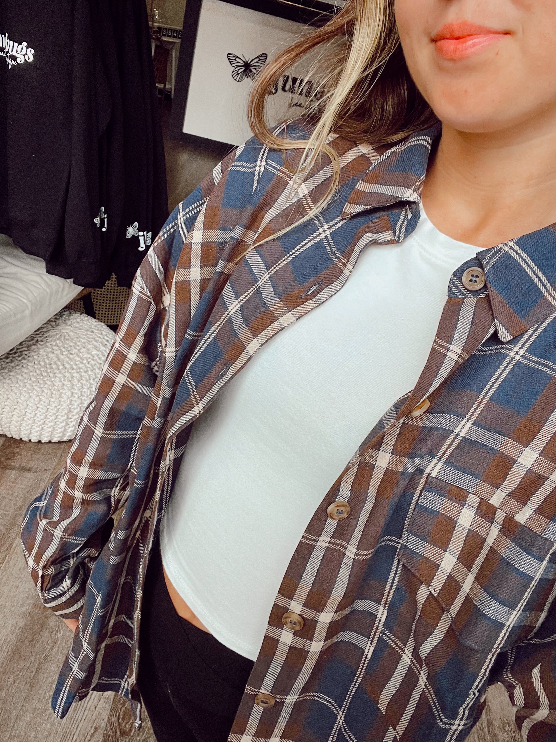 Cozy up in the Faith Plaid Flannel, your new favorite button-down shirt! With its classic navy plaid pattern and soft flannel fabric, it’s perfect for layering on chilly days or adding a touch of laid-back style. Whether you’re out exploring or just lounging around, this shirt brings comfort and cool vibes in one playful package.