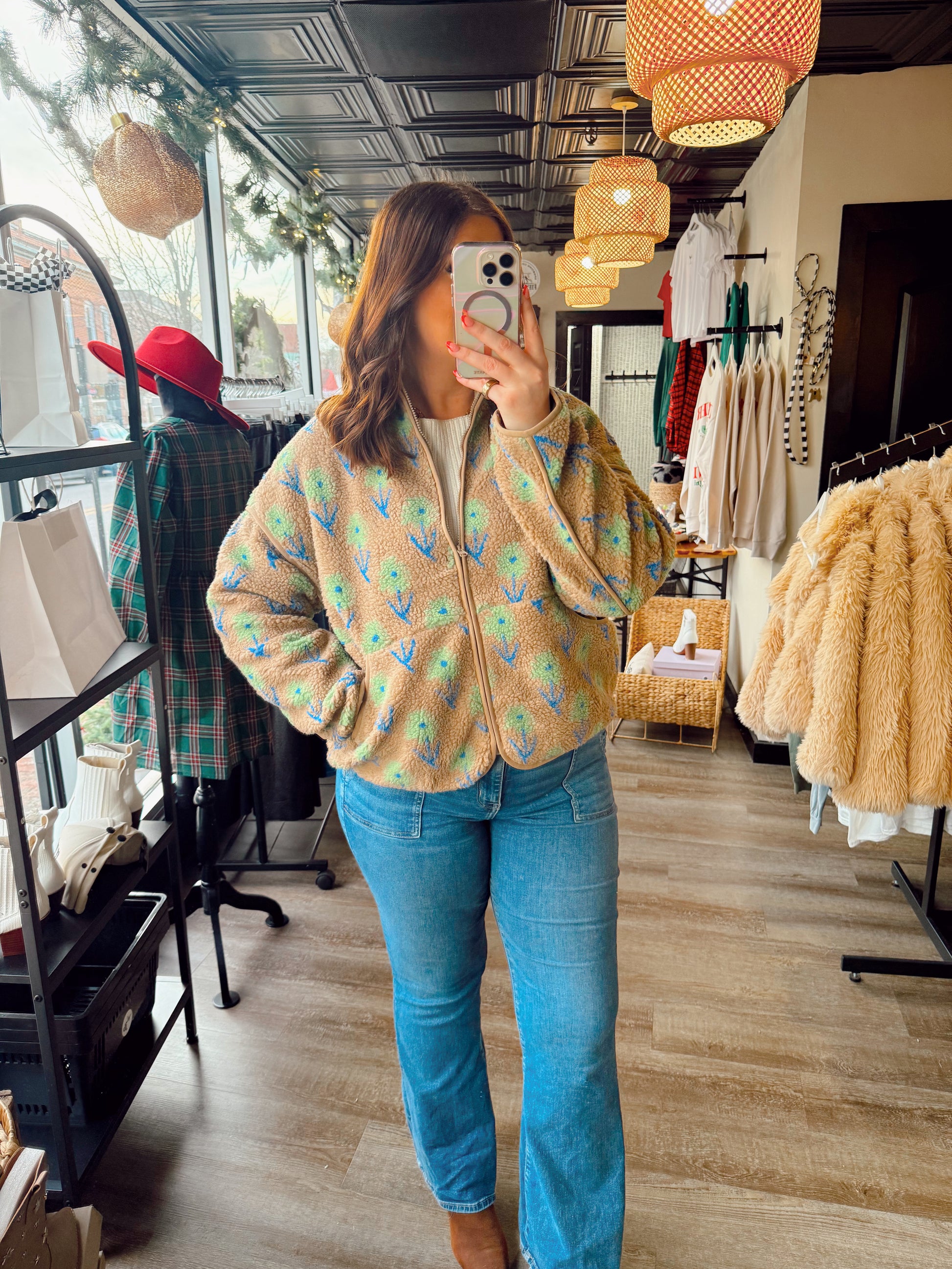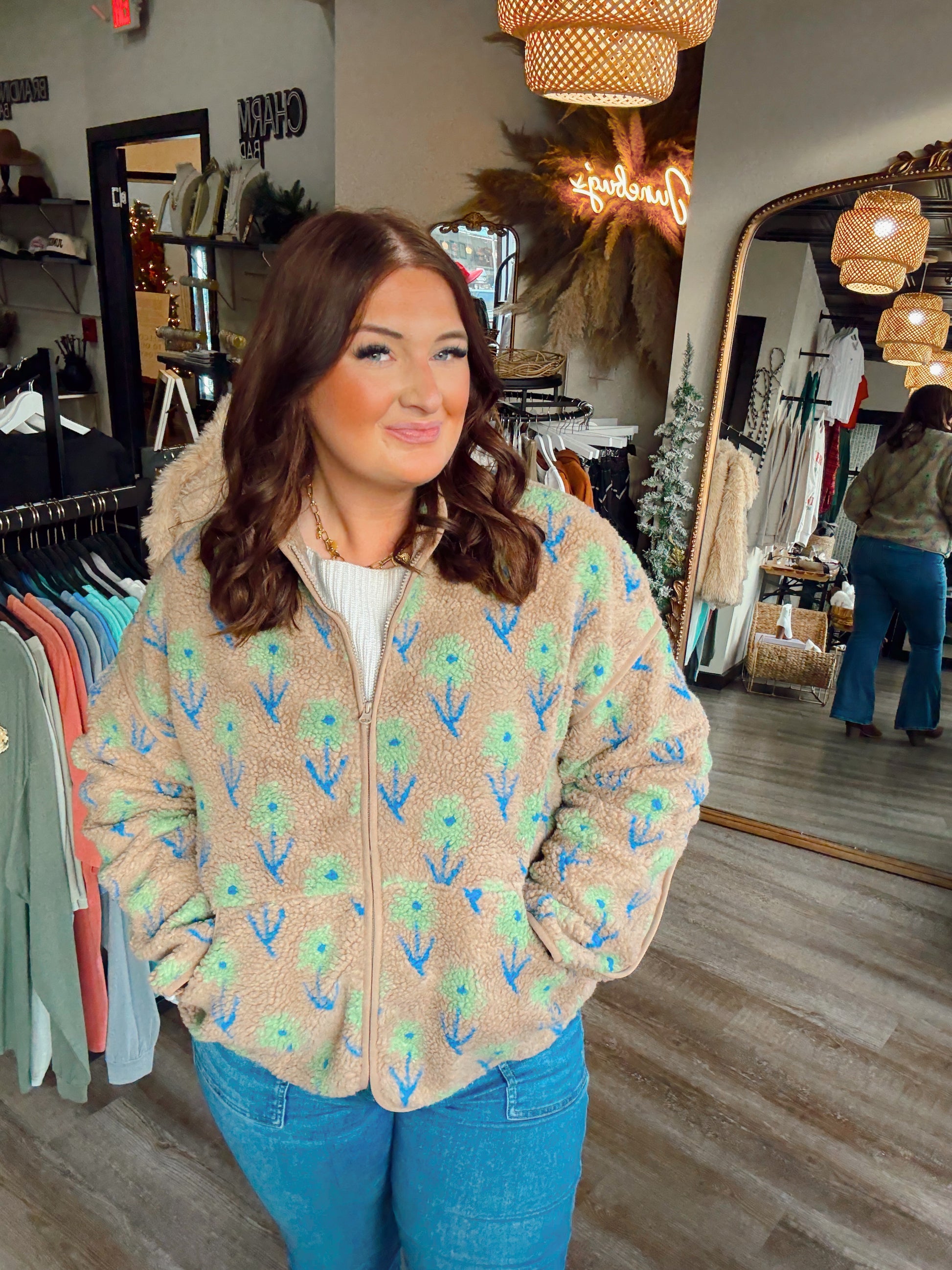 Wrap yourself in cozy charm with this adorable brown floral fleece sherpa jacket! Featuring a soft, plush sherpa lining and a convenient zip-up front, it's the perfect layering piece for chilly days. The delicate floral print adds a touch of whimsy to your everyday look, while the warm fleece keeps you snug and comfortable. Whether you're running errands or relaxing at home, this jacket brings both style and snuggle-worthy comfort to your wardrobe.