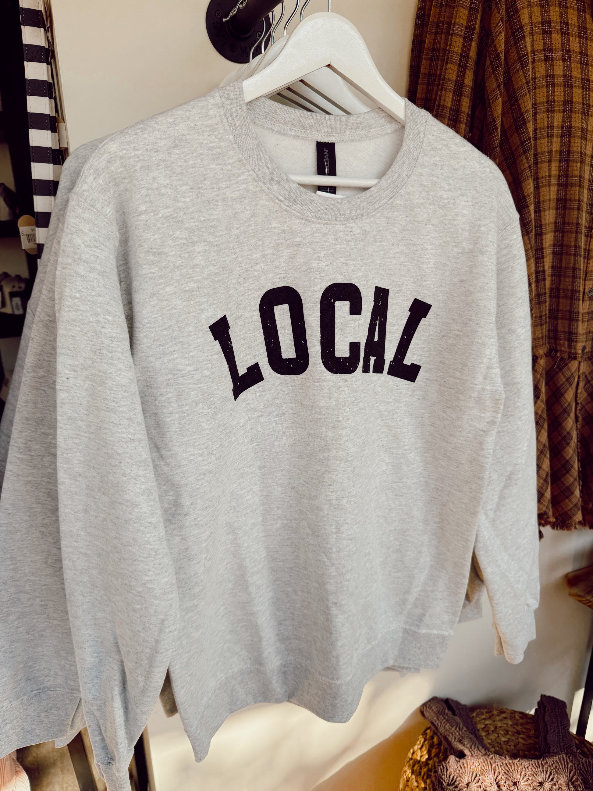 Stay cozy and show off your local love with our Local Pride Sweatshirt. This gray crewneck offers a comfy fit for everyone, available in a wide range of sizes. Perfect for chilly days or casual hangouts, it’s your new go-to for effortless style and hometown pride.