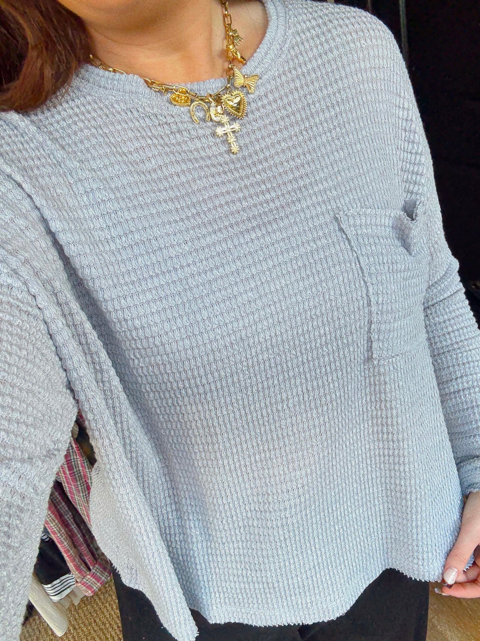 Float through your day in the Sleet Lightweight Sweater, a light grey waffle knit delight with a flattering boat neck. Super lightweight and breathable, it’s perfect for layering or wearing solo when you want cozy without the bulk. Embrace warmth and style that won’t weigh you down!